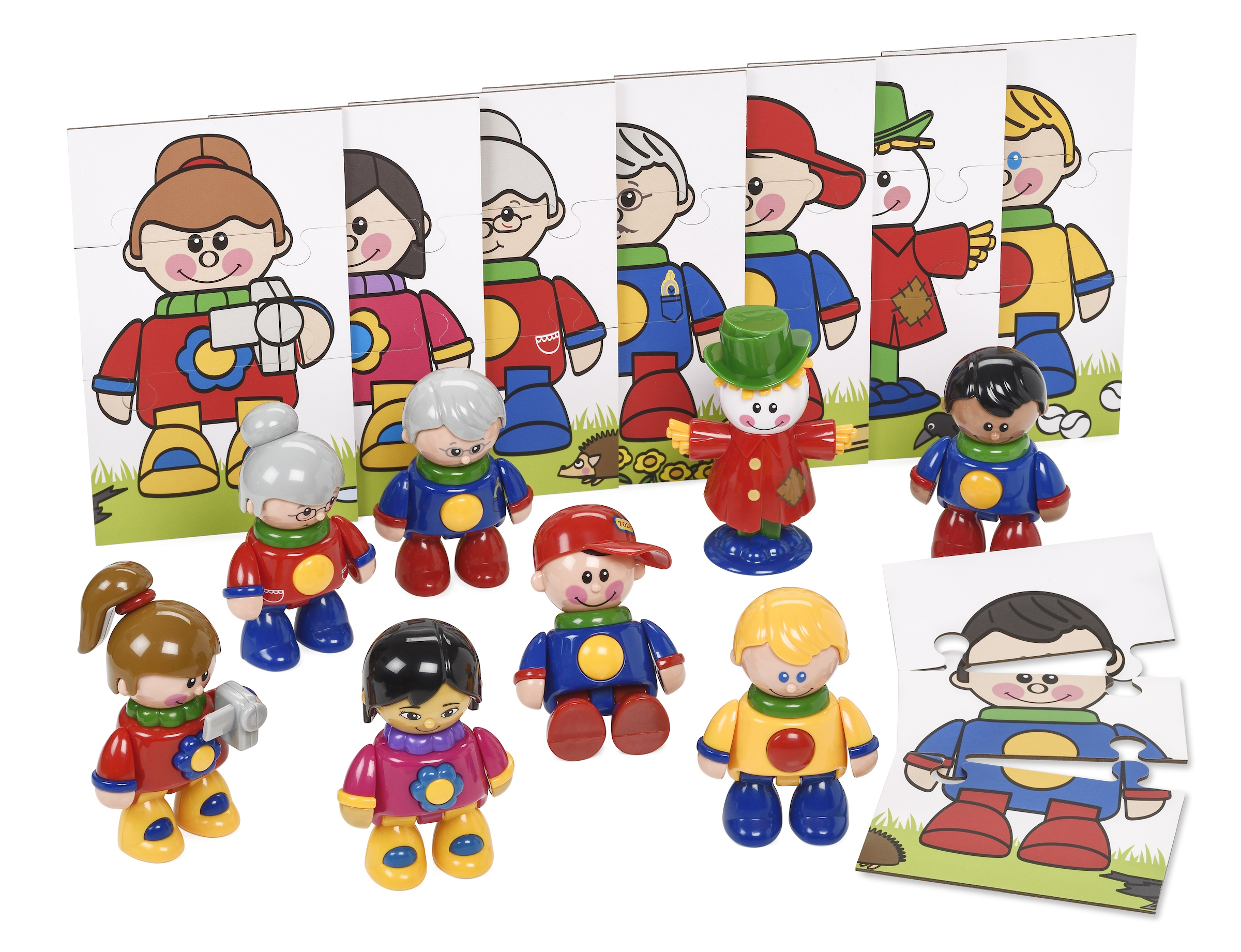 An ideal resource for learning about topics such as “Family” or “personal and social development”. The set contains 8 First Friends figures including 2 grandparents as well as adults, children and a scarecrow. The figures stand 12.5 cm tall and all have clicking and moving limbs. The set also comes with a matching 3-piece puzzle for each figure. The puzzles measure 12.5 x 21.0 cm. The figures have exceptional play value and are built to last. A great supplement to any First Friends collection.